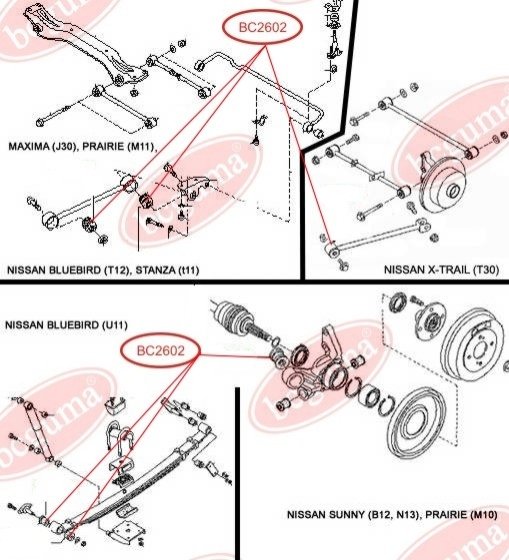 Сайлентблок продольной тяги задней подвески NISSAN X-TRAIL, BLUEBIRD, MAXIMA (50х12х56) BC GUMA BC2602